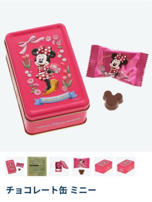 ①チョコレート缶(ミッキー・ミニー) ¥1,200/個